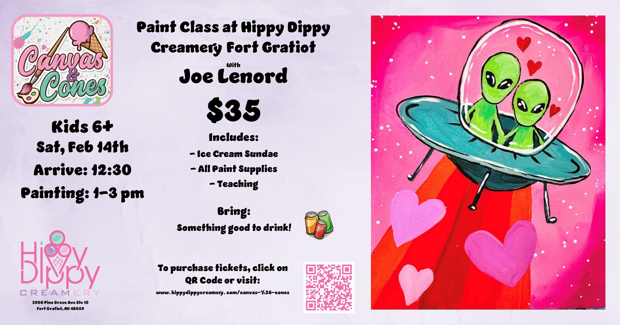 Includes an ice cream sundae and all paint supplies/instruction. Preorder by February 13th.