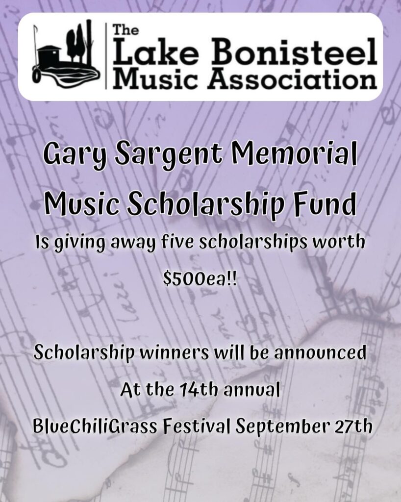 The Lake Bonisteel Music Association is accepting applications for several scholarships. The winners will be announced at the BlueChiliGrass Festival on September 27, 2025.