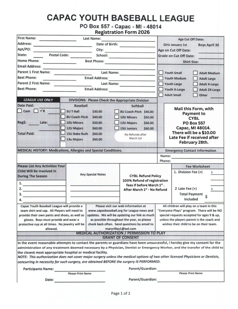 Port Huron Township Little League– in-person signups Feb. 7 and 21