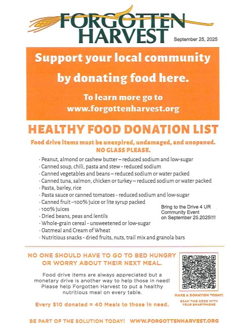 You can donate unexpired, undamaged healthy foods, or you can make a monetary donation. The food will be distributed to families in need locally. The food can be delivered to Northgate Ford Lincoln in Port Huron during their Drive 4 UR Community Event from noon to 6:00 p.m. on September 25th, 2025, or anytime that week.